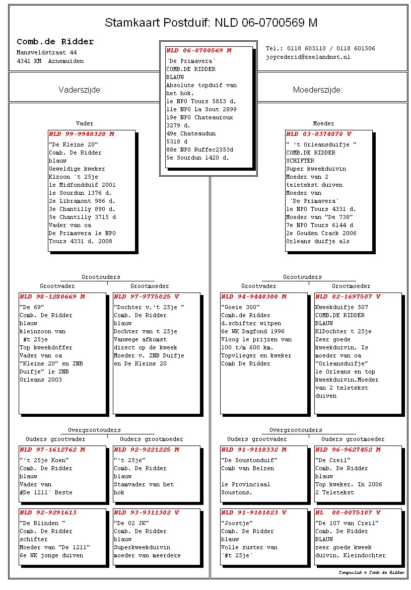 "De Primavera" werd gekweekt uit 2 toppers, nl "De Kleine 20", kleinzoon van "'t 25je.