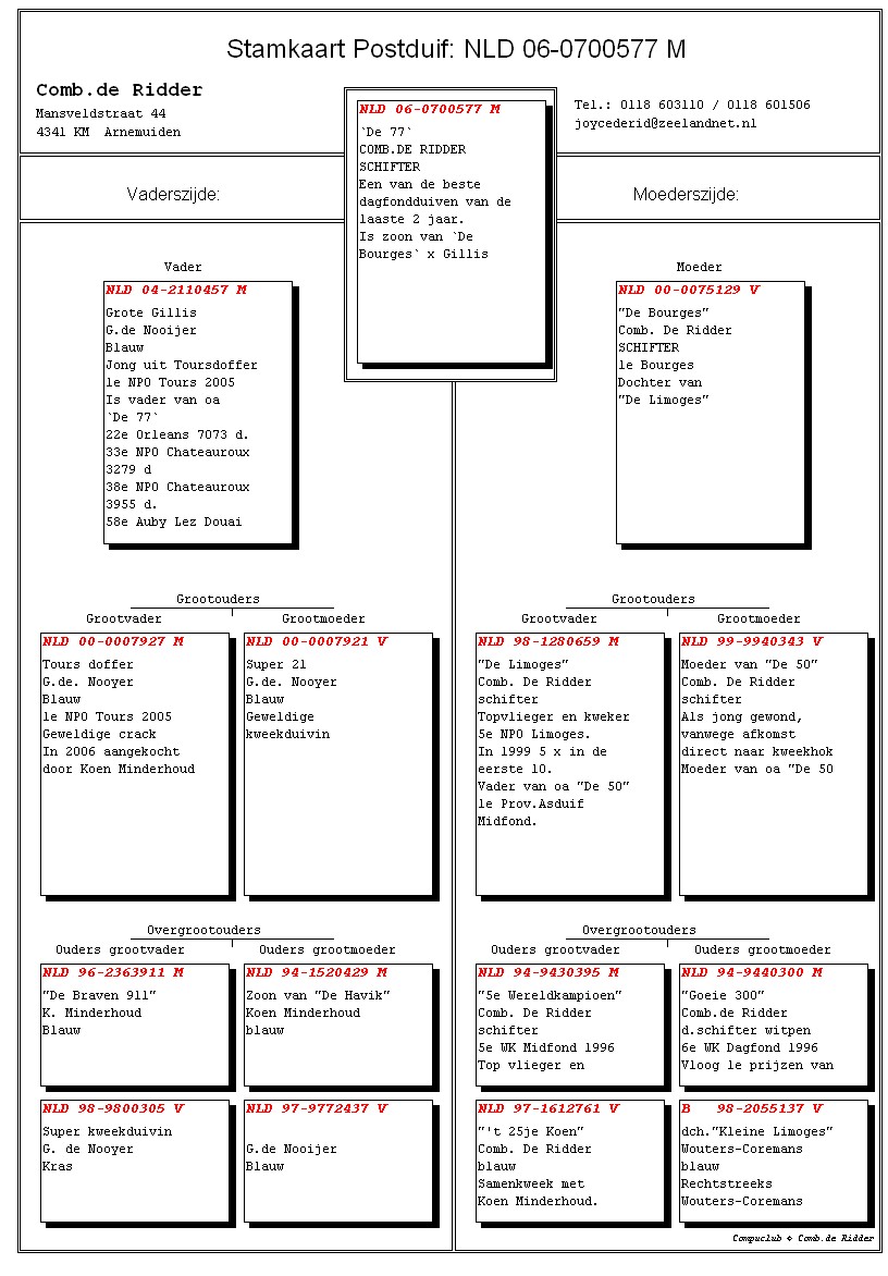 Elk jaar goed voor topuitslagen op de dagfond. "De Oude 77" is vader van "De Donkere 69" 9e NPO Argenton 4441 d.